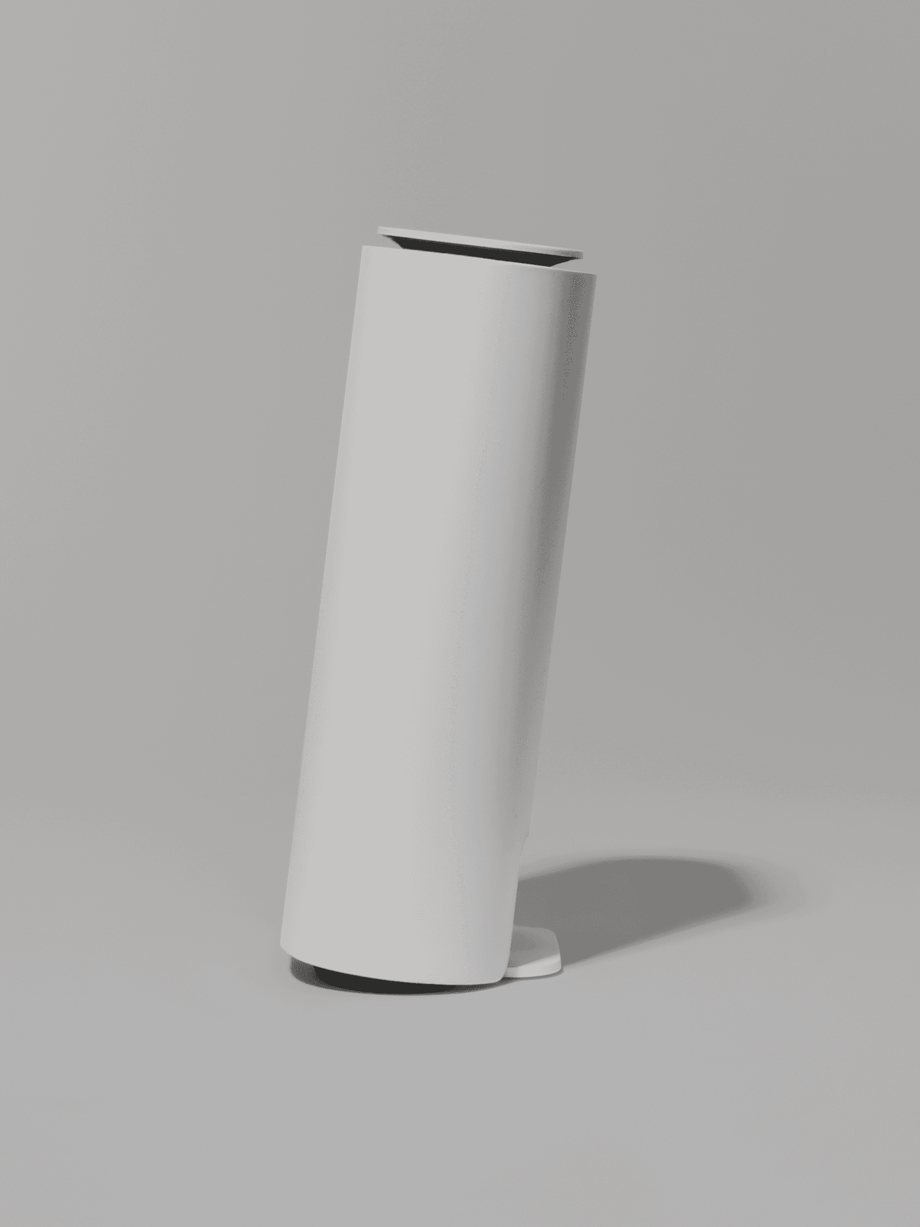 Each device is a vertical column that allows the flow of air inside, dissipating the inner heat. The column is slightly tilted, with its front raised, forming a gap between itself and the surface it rests on. Through this gap the air enters the device. The stream formed within exits through the top, creating a current that cools down the components inside.